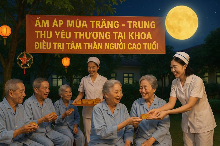Nhân dịp Tết Trung thu 2025, Khoa Điều trị Tâm thần Người cao tuổi – Bệnh viện Tâm thần Hà Nội đã tổ chức một buổi sinh hoạt ấm áp, đầy yêu thương dành cho các người bệnh đang điều trị nội trú. Chương trình mang ý nghĩa nhân văn sâu sắc, lan tỏa tinh thần “lấy người bệnh làm trung tâm” và gửi đến các cụ niềm vui giản dị trong mùa trăng tròn.
