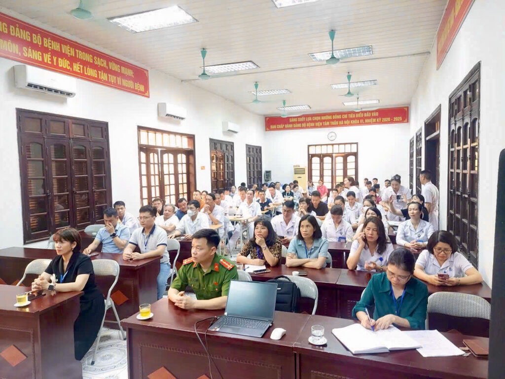 Ngày 15/4/2026, Bệnh viện Tâm thần Hà Nội phối hợp với Phòng Cảnh sát PCCC&CNCH – Công an TP Hà Nội tổ chức lớp tuyên truyền, bồi dưỡng, huấn luyện nghiệp vụ phòng cháy chữa cháy và cứu nạn cứu hộ (PCCC&CNCH) cho cán bộ, viên chức và người lao động trong toàn bệnh viện.
