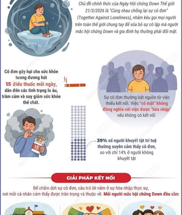 Nguyễn Mai Trang           Cô đơn – “kẻ thù thầm lặng” của sức khỏe           Ngày 21/3 hằng năm được chọn là Ngày Hội chứng Down Thế giới – dịp để cộng đồng cùng nâng cao nhận thức, lan tỏa sự thấu hiểu và đồng hành với người mắc hội chứng Down. Năm 2026, thông […]