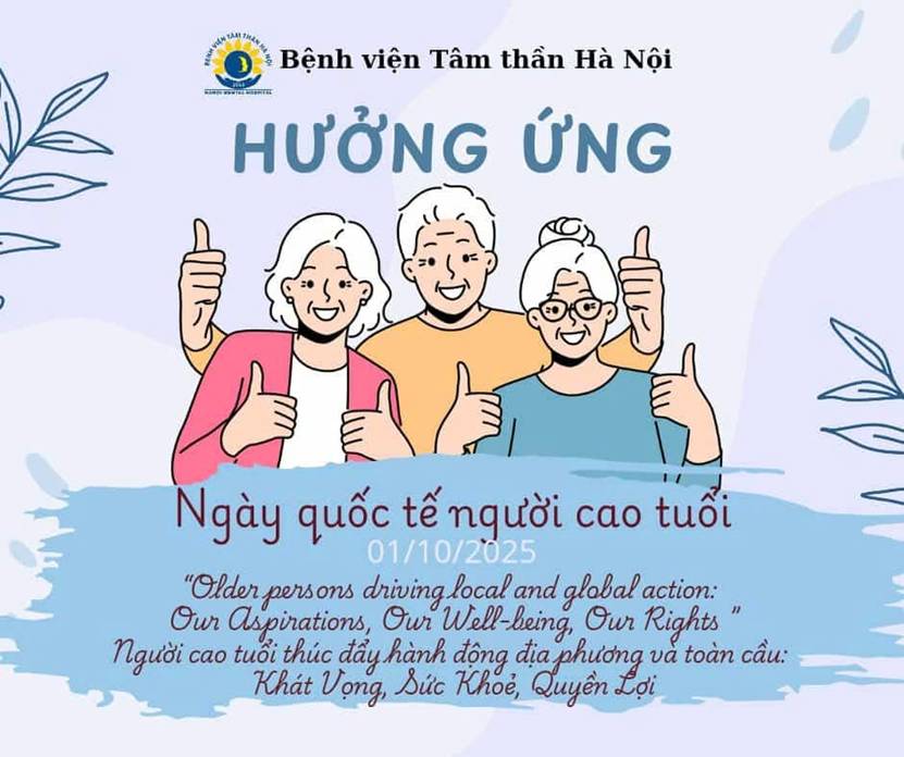 Ngày Quốc tế Người cao tuổi (1/10) năm 2025 được Liên Hợp Quốc chọn với chủ đề “Người cao tuổi thúc đẩy hành động địa phương và toàn cầu: Khát vọng – Sức khỏe – Quyền lợi”. Chủ đề này nhấn mạnh vai trò chủ động của người già trong xây dựng cộng đồng, đồng thời kêu gọi toàn xã hội bảo đảm quyền lợi, nâng cao sức khỏe thể chất và tinh thần cho họ. Trong bối cảnh già hóa dân số, việc quan tâm đến sức khỏe tâm thần của người cao tuổi không chỉ giúp họ sống vui – sống khỏe, mà còn tạo động lực để họ tiếp tục đóng góp cho gia đình và xã hội.