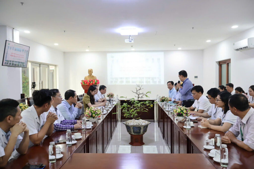 Lãnh đạo và cán bộ hai bệnh viện cùng thảo luận trong buổi họp